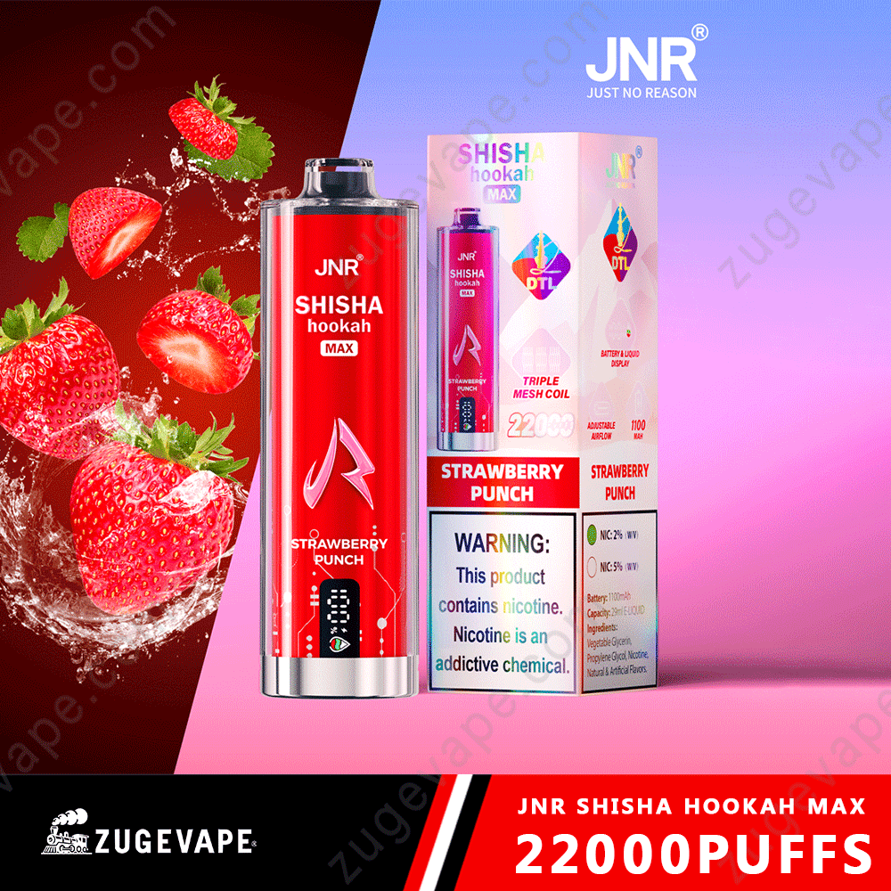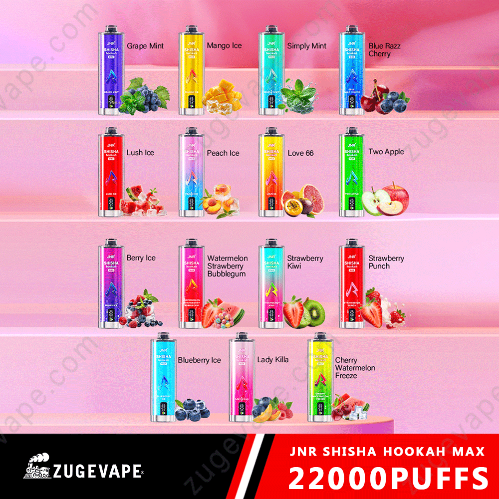 Upptäck de JNR Shisha Max 22000 puffar vape penna. erbjuder en premium DTL-upplevelse med 15 läckra smaker. Om du är ute efter att vape utan Nikotin köpa. du kan köpa denna kraftfulla 22K vape online eller hitta en nära vape butik för långvarig tillfredsställelse. Max e shisha väntar på dig!